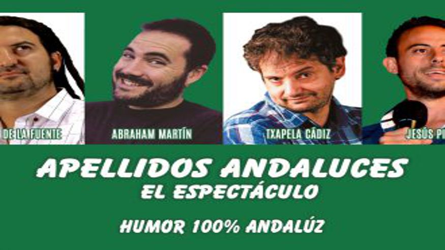 Cuatro cómicos andaluces y hermanos de padre, pero cada uno de distinta madre, se juntan para llenar de carcajadas los teatros y salas con su espectáculo de impro y monólogos “Ocho Apellidos Andaluces”. Un espectáculo con salero, cargado de ironía y mucha improvisación. Sin duda, ¡Humor 100% andaluz!.