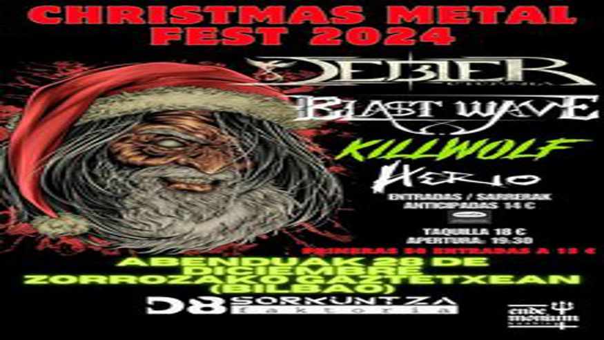 Celebraremos el fin de año con un festival muy especial. El regreso de DEBLER a Bilbao, una de las bandas de Metal sinfónico más exitosas del país. Junto a ellos estará el combo guipuzcoano formado por BLAST WAVE y KILLWOLF y el conjunto local HERIO.