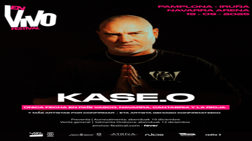 Vuelve el Festival EN VIVO. Esta vez se celebrará en la ciudad de Iruña-Pamplona el 19 de septiembre de 2025 en el Navarra Arena. El cabeza de cartel será Kase.O, quien llegará conmemorando sus 30 años de trayectoria dentro de la industria musical. Al artista se le unirán muchos más que se irán confirmando los próximos meses.