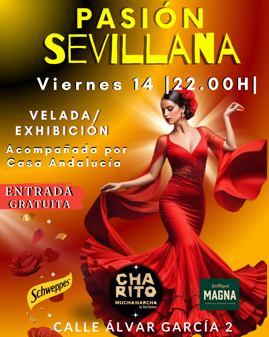 Disfruta de los mejores bailes sevillanos, flamencos, con mantón, abanico, rumba, paso doble y mucho más este viernes 14 a las 22:00.