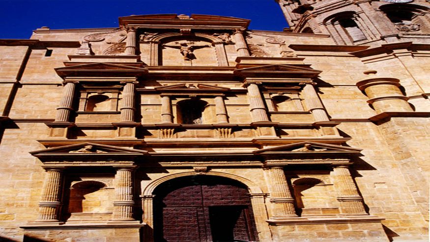 Dentro del Casco antiguo de la localidad, destaca la majestuosa silueta de este templo, magnífica muestra de arquitectura renacentista de transición al manierismo. La fábrica de esta imponente construcción de cantería corresponde a finales del siglo XVI, finalizando su construcción en el año 1609. La torre, cuyo contrato de construcción se realiza en 1660 se sitúa en el ángulo suroriental. El edificio está declarado Bien de Interés Cultural.