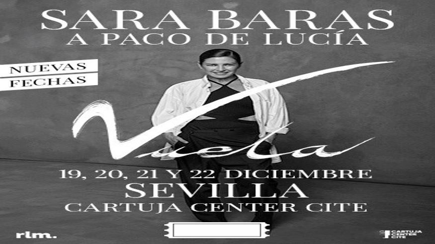 Cuando su compañía cumple 25 años, Sara Baras quiere rendir un homenaje al genio por antonomasia de la guitarra, Paco de Lucía, desde el respeto, el cariño y el amor que tanto se profesaban, nace “Vuela”, un espectáculo creado para ser inolvidable, para transportarnos una vez más a ese mágico mundo que sólo Sara Baras es capaz de crear. Afrontando en esta ocasión la responsabilidad de hacer tributo al genio de Algeciras, este viaje coreográfico está compuesto por 15 piezas únicas, donde cada una de ellas girará en torno a una palabra, creando así, con nuestro lenguaje flamenco, palabras en movimiento.Un recorrido fascinante dividido en cuatro actos, cada uno de ellos teje una narrativa poderosa. Madera, que nos recuerda la fuerza de unas raíces,la calidez del ser. Mar, que nos invita a navegar en la pasión y ser como el agua.